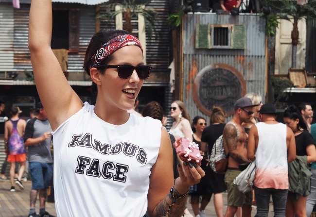 The festival was well organized and we ended up at the VIP Parking, only a few minutes walking from the entrance which is located next to a lake. After passing the security control and ticket doors we saw some of the different stages which were decorated with original details and it didn't take long before we found the first drink/food stands with their own cosy corners. And you're all probably wondering why I'm walking around with a donut? Cause the day before it was National Donut Day and no I could miss that without having a big box full of Hoeked Doughnuts. But for example at Aperol you could party at their own private garden party, decorated with oranges in the trees and a lounge corner with a DJ. And at Somersby you got a summer/garden feeling because of the romantic decorated bench and their delicious apple cider. You could even try their new flavor rhubarb. I was surprised by how good it tasted that I ended up drinking a little too much. #sorrynotsorry So it was time to eat something. Cause we all know that alcohol and warm weather doesn't go well together (yes Cindy, roger that for your next apple cider drink). Burgerij and other food trucks were providing us some good food and there was something for every one for reasonable prices.